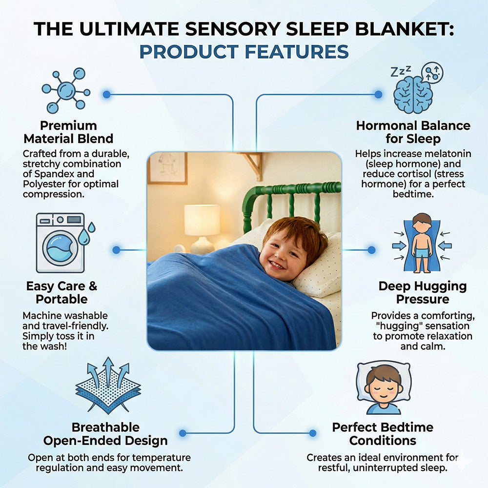 It offers a secure, calming “hug-like” feel while remaining breathable and comfortable.